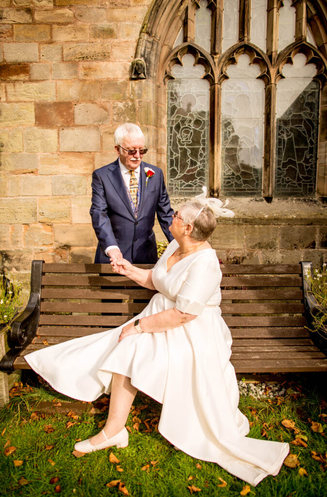 I met them both at the church with my cameras just as their closest family and friends were arriving, the vicar who took the renewal was a breath of fresh air, allowing me to take photos whilst he conducted the service. After the standard family group photos outside, Angela was keen to recreate a photo that was taken on their original wedding day. We found a similar spot and both of them stood in same pose as they had done all those years ago, it was a really special moment. After a few more couples portraits we headed to The Moat House where I was able to capture a few quick photos at this fantastic venue. I left Angela and Andrew just before their meal was due to be served, showing that even just by spending a couple of hours with them I was able to give them some great photos to add to their 40 years or memories.